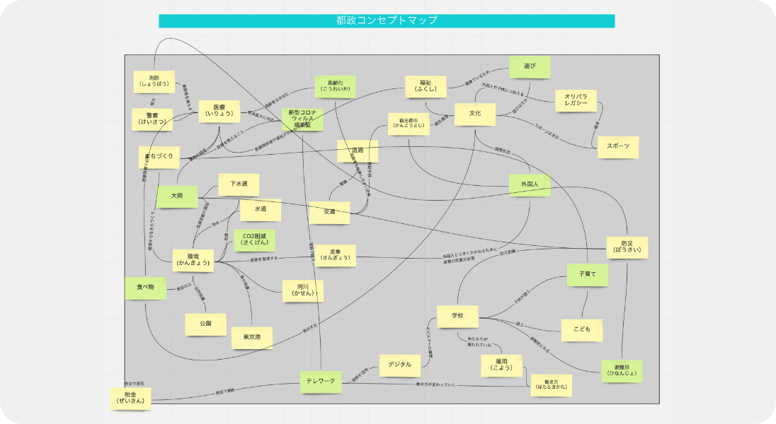 開発中のホームページを操作してもらったり、東京都の仕事(都政)で関連するものをつなげて一つのマップを作ってもらったよ。