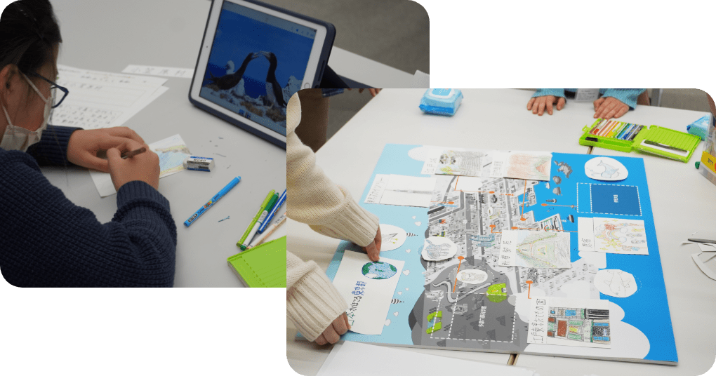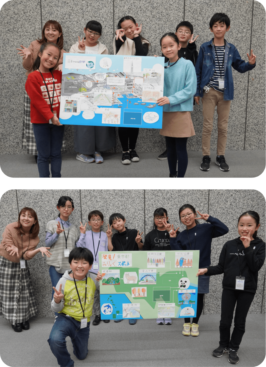 ワークショップでは、東京都の魅力的な施設や名所を紹介するマップを作成したり、