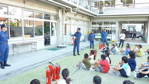 - 消防団は、火災などの災害活動をはじめ、地域住民などへ消火や応急救護などの知識や技術の指導を行っています。